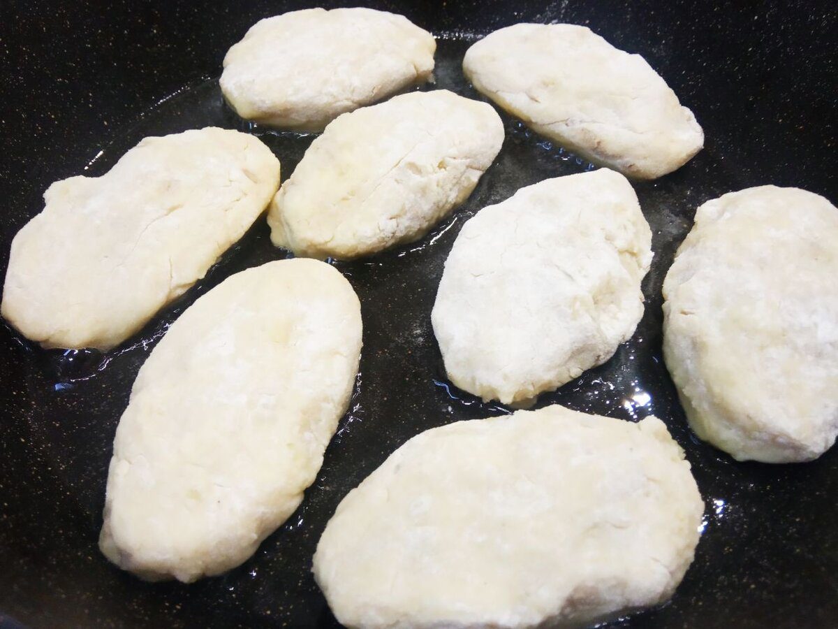 Цибулю очистьте і також дрібно наріжте. Викладіть її смажитись на розігріту олію, потім додайте філе. Смажте м’ясо з цибулею до готовності. Після – перекладіть до грибів. Перевірте картоплю і, якщо вона готова, зробіть з неї пюре. Ретельно перемішайте начинку та використовуйте для приготування пиріжків. Смачного!