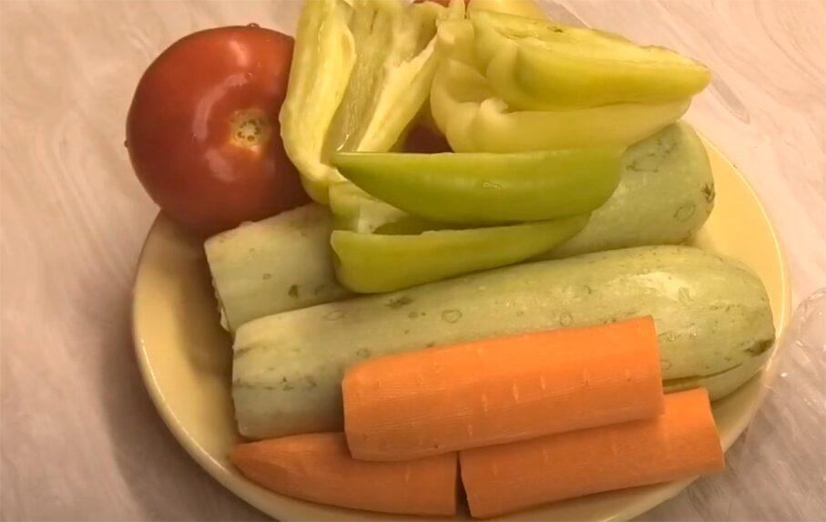 Щоб приготувати кабачкову ікру за 20 хвилин, овочі вимийте та просушіть. Кабачки та моркву наріжте кружальцями. Морква готується довше за інші овочі, тому робіть кружальця якомога тоншими.