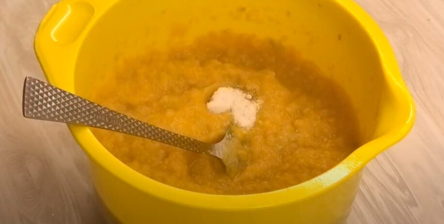 Коли дістанете пакет з овочами, рідину злийте. Кабачки та решту інгредієнтів перекладіть у миску й потовчіть зануреним блендером. Спробуйте на смак – можливо, захочеться ще трішки підсолити. Всипте чорний мелений перець. Перемішайте.