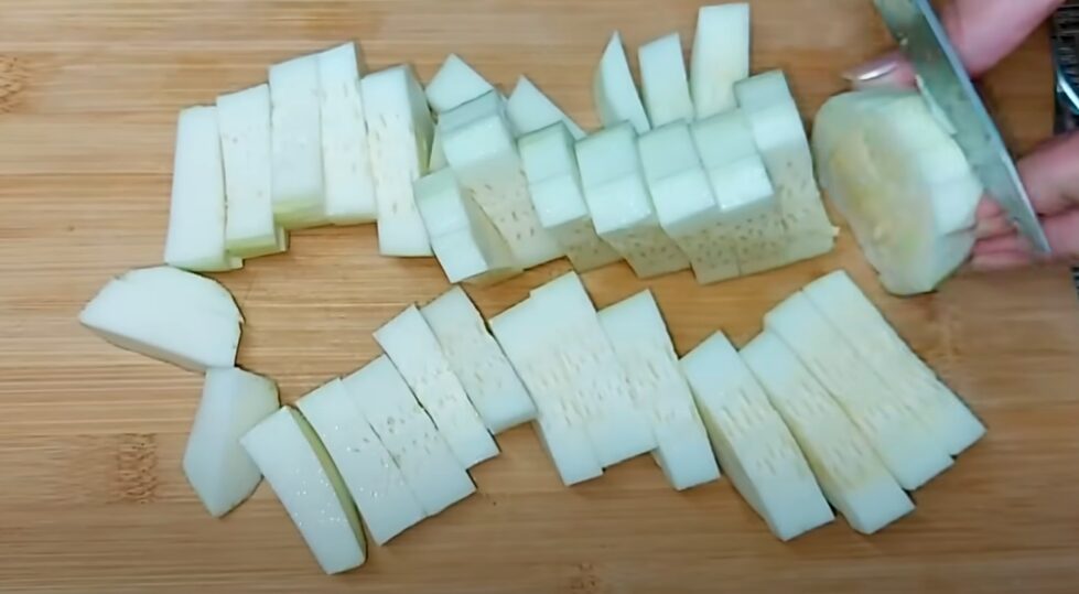 Щоб приготувати кабачок по-корейськи, овоч вимийте, просушіть, обріжте хвостики з обох боків та обчистьте шкуринку. Наріжте спочатку вздовж на довгі смужки. А потім впоперек, щоб вийшла товстенька соломка.
