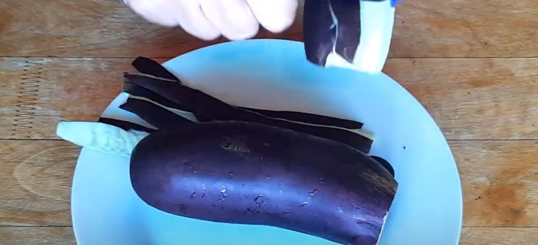 Щоб приготувати відбивні з баклажанів, овочі позбавте від фіолетової шкуринки. Бажано, щоб вони були молоденькими, в яких ще не розвинулося насіння. Наріжте вздовж на тонкі смужки по 5 мм завтовшки. Якщо є можливість, скористайтеся спеціальною тертушкою для цього.