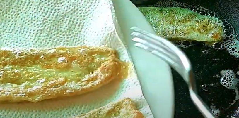 Перекладайте на сковорідку. Смажте на середньому вогні, допоки не підрум’яняться з одного боку. Потім переверніть на інший та доведіть до готовності. Спочатку викладайте на паперову серветку, щоб зійшов зайвий жир.