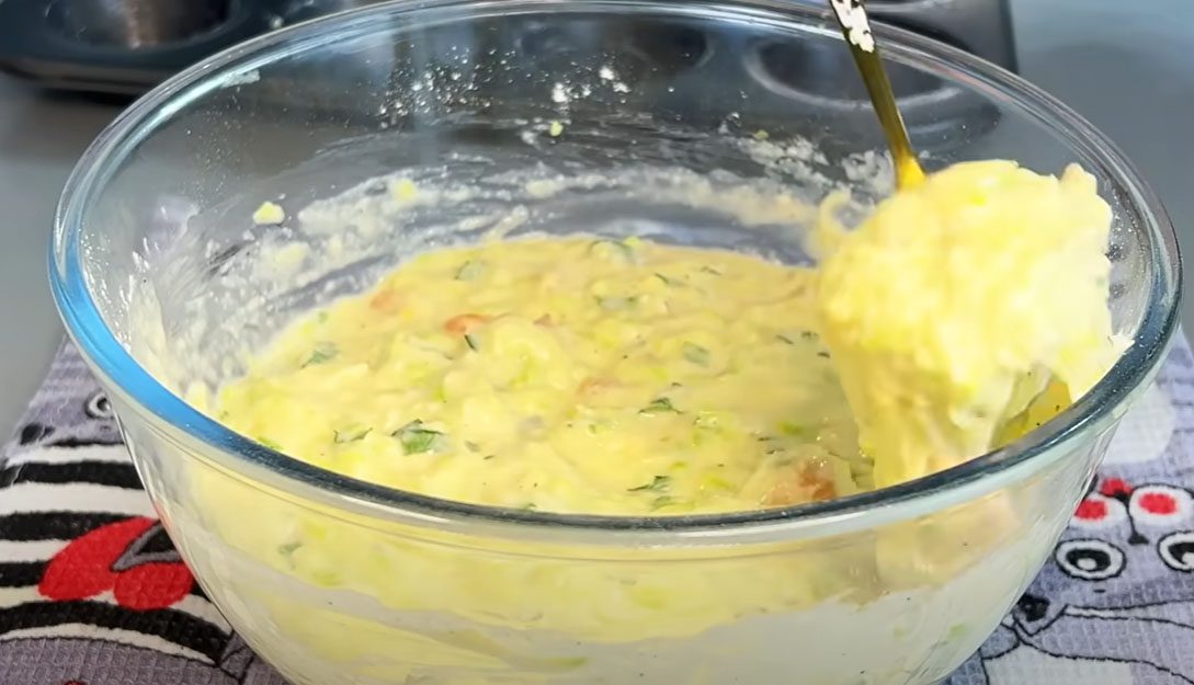 Ретельно перемішайте, щоб не було грудочок. Якщо кабачкове тісто видається вам рідкуватим, додайте ще трішечки борошна. Сир Ламбер чи будь-який інший натріть на тертушці. Додайте до тіста.