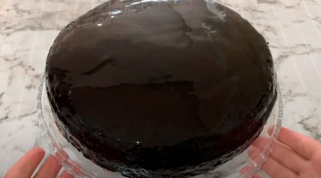 Приготуйте глазур. Цукор змішайте з просіяним какао. Влийте воду. Перемішайте вінчиком. Поставте на невеликий вогонь. Доведіть до кипіння, але не кип’ятіть. Зніміть з плити. Влийте олію. Перемішайте.