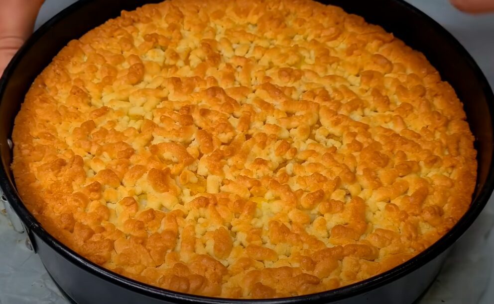 Підрівняйте бортики. Дістаньте тісто з морозилки й натріть на тертушці з великим отворами поверх пирога. Випікайте у розігрітій до 180 градусів духовці протягом 25-30 хвилин. Коли готовий молочно-апельсиновий пиріг прохолоне, зніміть бортики форми, перекладіть виріб на блюдо й присипте цукровою пудрою.