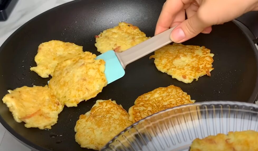 Поставте пательню на вогонь. Підлийте олію. Коли вона розігріється, викладайте оладки з тіста туди ложкою. Смажте на середньому вогні. Щойно підрум’яняться, переверніть на інший бік та доведіть до готовності.