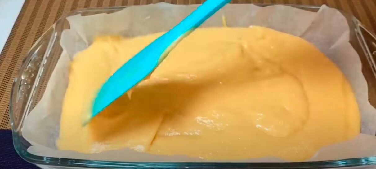 Форму для випікання вистеліть пергаментом. Викладіть половину тіста. Рівномірно розподіліть по всій поверхні. Зверху акуратно викладіть будь-яке варення. Залийте другою частиною тіста.