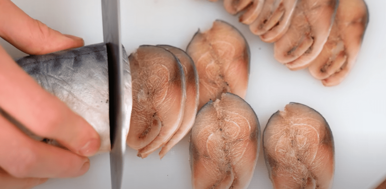 Можете покласти рибку до холодильника й не чіпати до самого ранку. Після цього згортки з філе покладіть до морозилки на 2-3 години. Треба, щоб рибне сало трішки підморозилося.