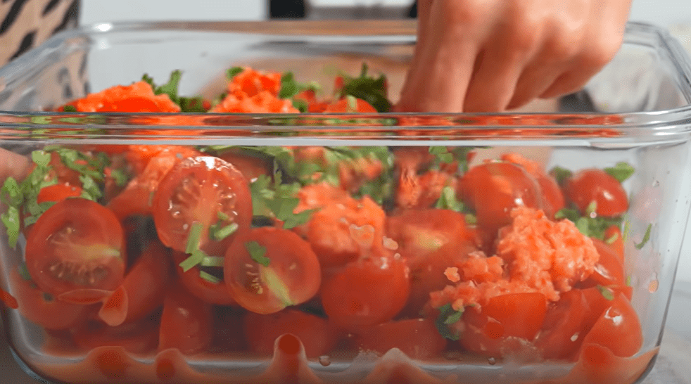 А краще потримати їх на холоді протягом 6-8 годин. Тоді вони будуть ще смачнішими. Якщо ви брали великі помідори й нарізали не на половинки, а на шматочки, то краще їх не перемішувати, щоб не порушити структуру.