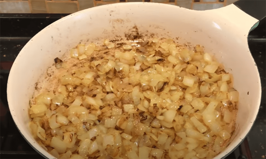 Цибулю обчистьте та наріжте дрібними кубиками. На пательні розтопіть шматочок вершкового масла, яке за потреби можете замінити олією. Викладіть цибулю. Підсмажте, постійно помішуючи, до золотавості.