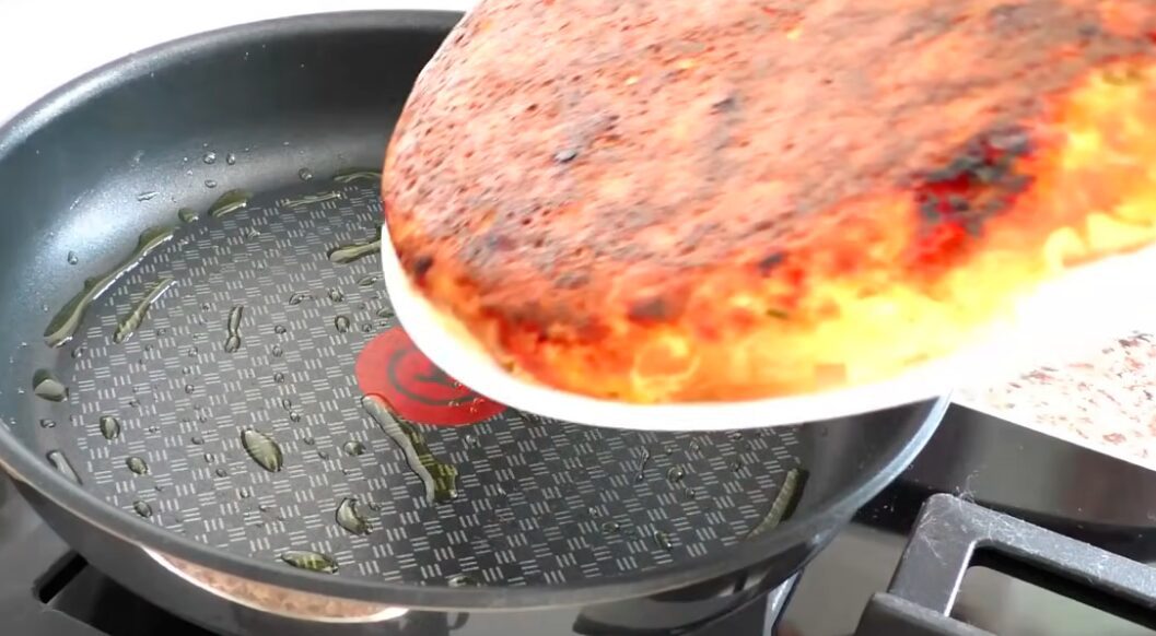 Коли хлібна запіканка підрум’яниться, прикладіть до пательні тарілку. Переверніть туди наш виріб. Сковорідку знову змастіть олією. Потім акуратно поверніть назад запіканку, тепер уже іншим не підсмаженим боком.