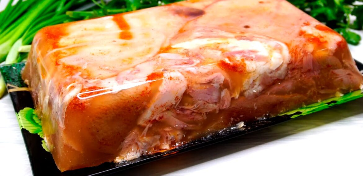 Мармурову нарізку можна буде подавати до столу як закуску або на сніданок замість ковбаси. Вимийте вуха та складіть у каструлю. Туди ж відправте курячі стегна. Додайте сіль, горошки чорного та суміші перців, лавровий лист.