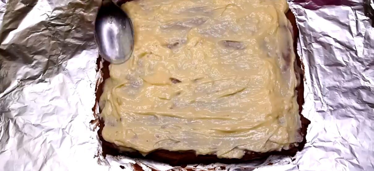 Сформуйте прямокутник завтовшки не більш як 10 мм. Зачекайте, допоки печінковий паштет трішки прохолоне. Викладіть розм’якле вершкове масло. Загорніть рулетом, допомагаючи формувати правильну форму та притискаючи фольгою.