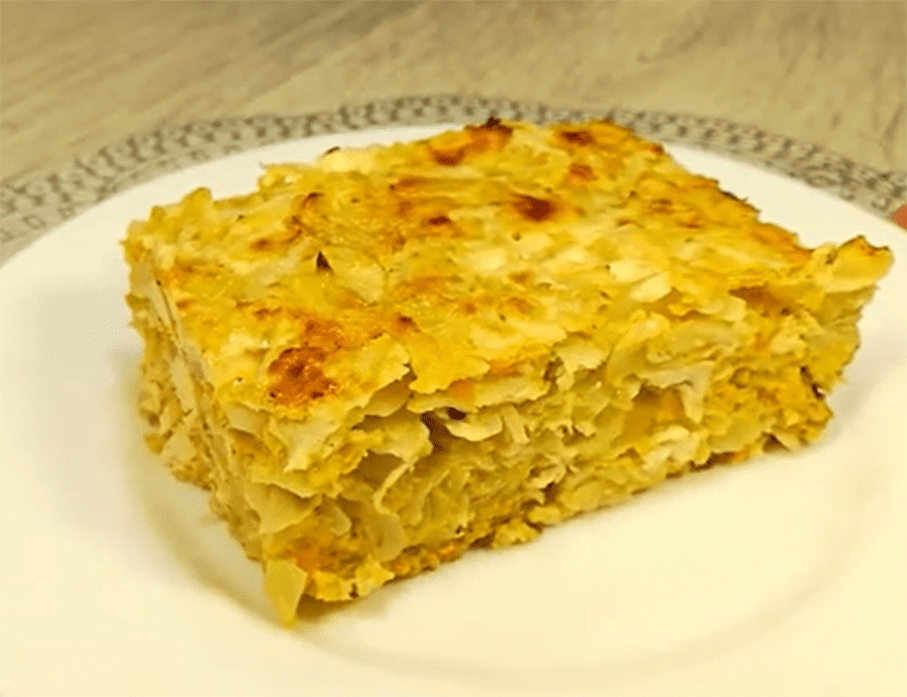 За бажанням, можете присипати натертим сиром. Але це зовсім не обов’язково. Поверніть у духовку та потримайте там ще зо 15 хвилин. Коли запіканка трішки прохолоне, наріжте її на порційні шматочки та подавайте до столу.