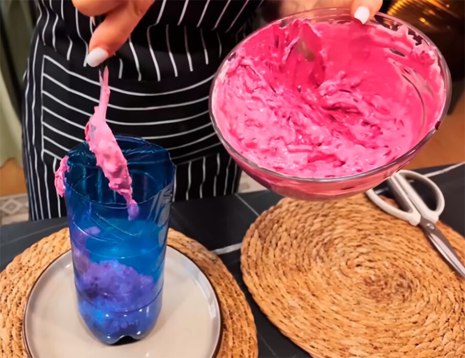 Заповніть тару буряково-сирною масою. Верх прикрийте харчовою плівкою. Поставте до холодильника на кілька годин, щоб закуска стабілізувалася. Зніміть плівку. Ножицями надріжте пляшку та вивільніть бурякову ковбасу.