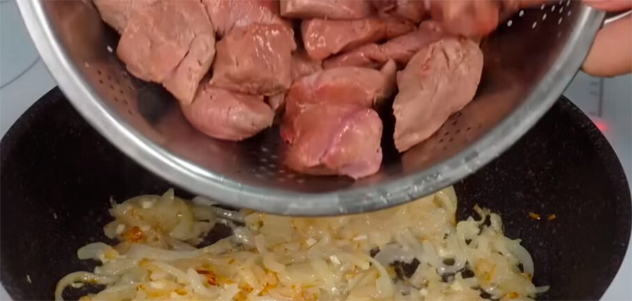 Щоб приготувати ніжну й соковиту печінку, треба врахувати кілька нюансів у процесі приготування. Позбавте її від плівочок та наріжте на шматочки. Обдайте крутим окропом і витримайте кілька хвилин. Таким чином удасться позбутися неприємного запаху та гіркого присмаку.