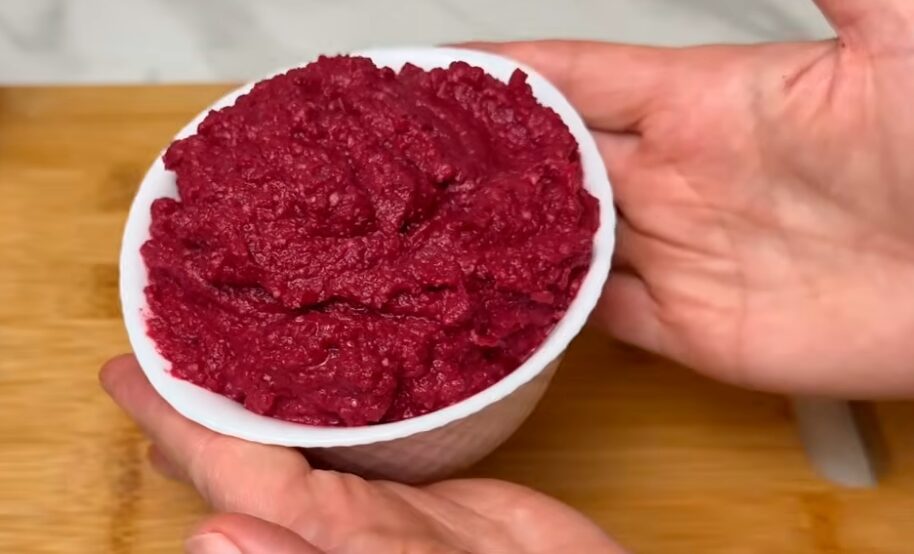 Який стан оберете – ваша справа. Може бути повністю однорідна маса, або ж зробіть так, щоб на зубах відчувалися шматочки. Подавайте до столу буряковий паштет на шматочках хліба, підсушених на сухій сковорідці, чи грінках.