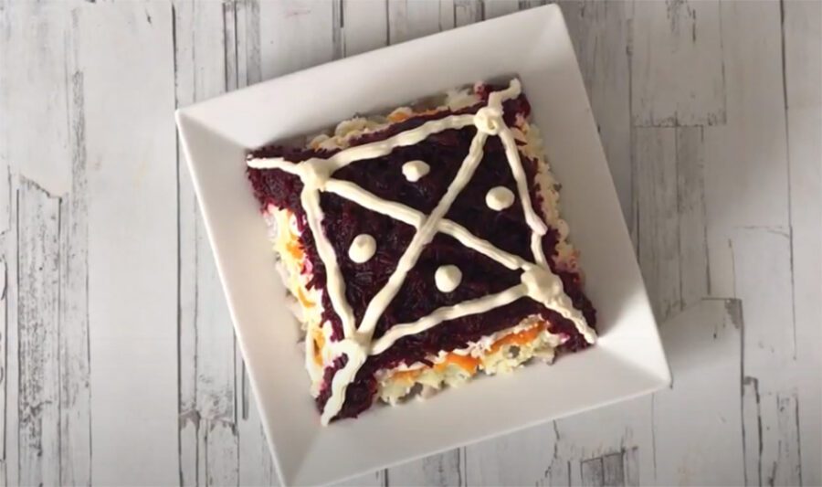 Традиційно першим шаром кладуть рибу, але це помилка, бо оселедець виділяє жир і вологу, якій нікуди діватися, окрім як розтікатися по тарілці. Натомість редакція рекомендує наступну послідовність:
