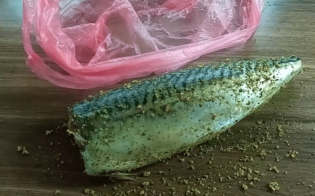 У складі приправи вже є сіль, тому солити скумбрію не доцільно. Та якщо любите, щоб було ретельно посолене, тоді можете присипати зовсім трішечки. Тільки не перестарайтеся, аби не зіпсувати дорогий продукт.