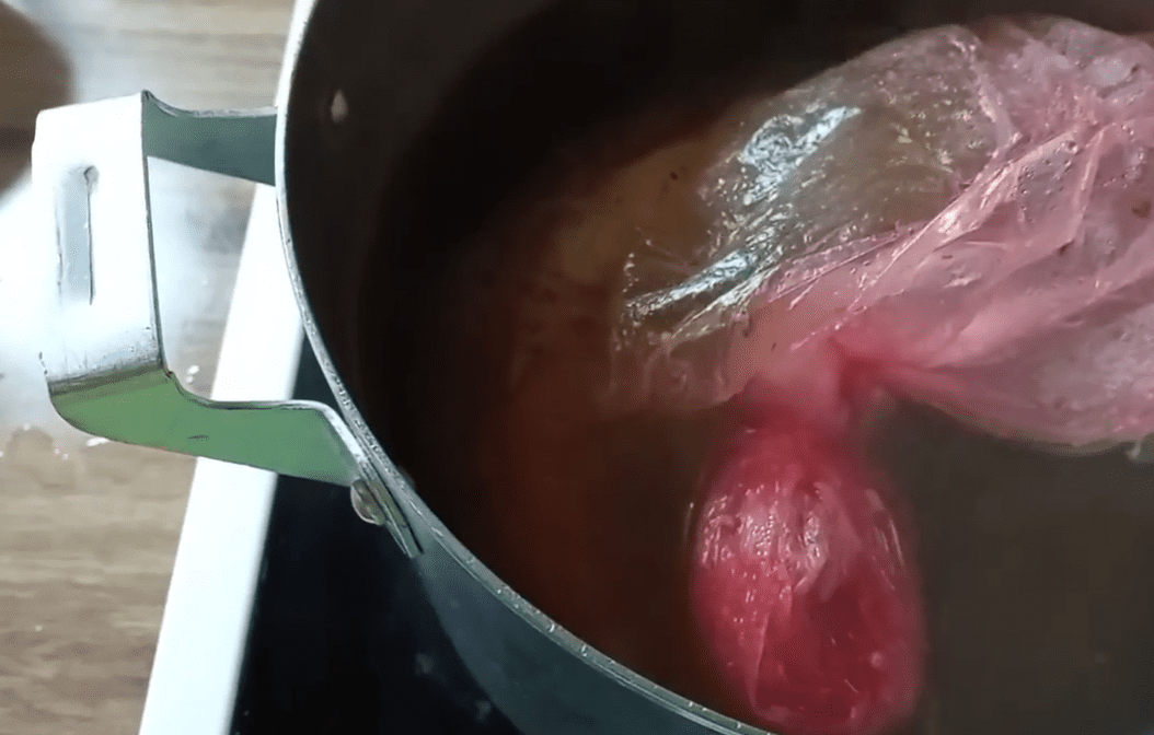 Нагрійте у каструлі воду. Коли закипить, покладіть туди нашу скумбрію в пакеті. Вона має повністю бути покрита водою. Варити треба 5-6 хвилин, якщо рибинка величенька. Якщо у вас меншенька, достатньо буде й 3-4 хвилини.
