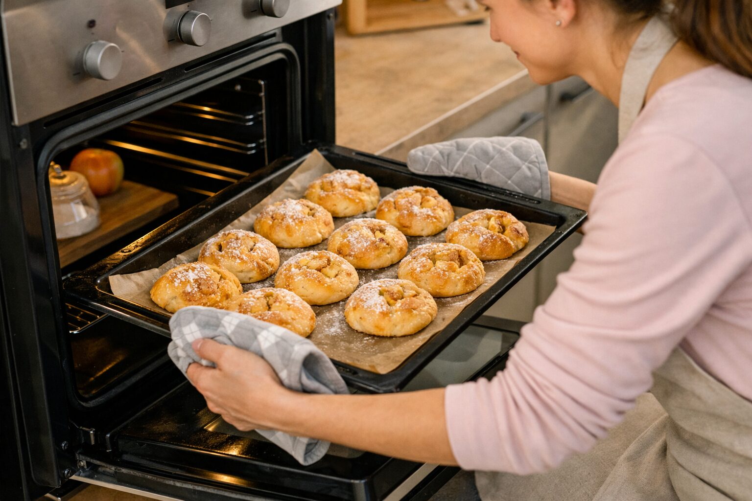 Домашні булочки не зрівняються за своїм ароматом з магазинним товаром. А якщо додати у тісто ще й кисломолочний сир та яблука, вийде взагалі така смакота, що неможливо втриматися, аби не з'їсти ще.