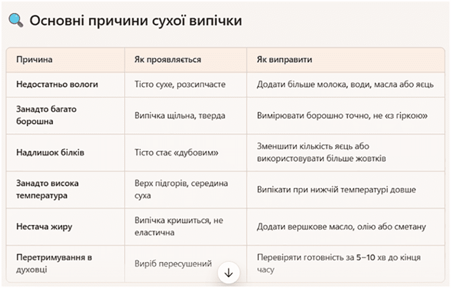 Чому випічка виходить сухою