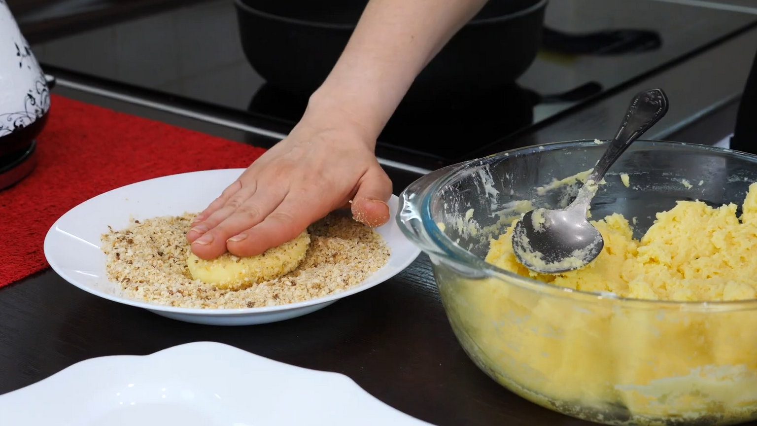 Далі знову яйце та ще раз панірувальні сухарі. Але викладати на пательню не поспішайте. Спочатку викладіть напівфабрикати на дошку й відправте до холодильника на 15 хвилин. У такому разі панірування перетвориться на хрумку скоринку й ніколи не пошкодиться й не обпаде під час смаження.