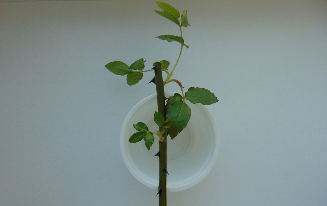 Накрийте їх, захищаючи від полуденних сонячних променів, поліетиленом, скляною банкою чи пластиковою. Укриття знімете, коли почнуть наростати нові листочки. За місяць підгодуйте молоденькі рослини добривом, аби троянди встигли наростити кореневу систему до настання холодів.