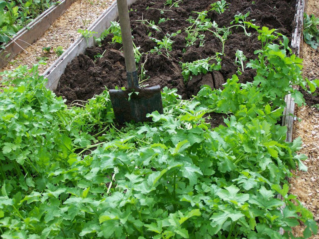 Зачекайте 3-4 тижні, щоб росточки укріпилися. Після цього безжально скосіть зелень та перекопайте землю разом із сидератами. Деякі городники залишають сидерати поверх ґрунту як мульчу.