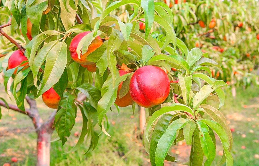 А от інший персик можете сміливо висаджувати неподалік. Дерева-сусіди не будуть конфліктувати. Тільки зважте, що коріння цих рослин розгалужується під землею на 3-4 м навсібіч, тож доведеться висаджувати на відстані не менш як 5 м.