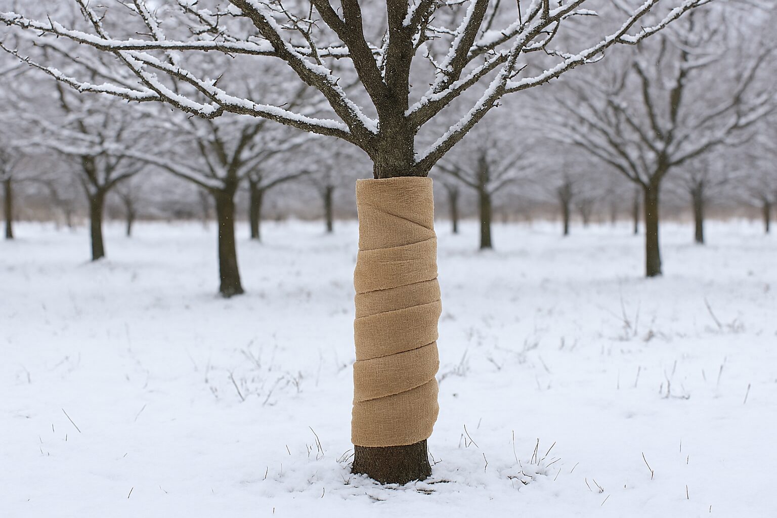Якщо проводите обв’язку, враховуйте, що це повинно бути не дуже туго, щоб між стовбуром та захисним матеріалом циркулювало повітря.