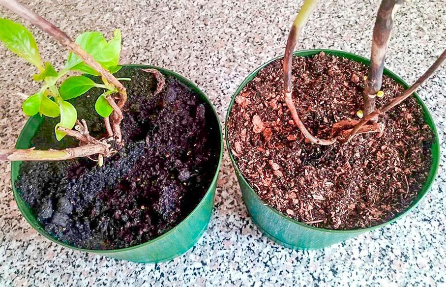 Візьміть у руки горщик. Якщо він видається важкенький, значить, поливати ще рано. Дочекаєтеся, допоки стане зовсім легким, і вже тоді підлиєте живильної вологи. У перший день на новому місці у будь-якому разі поливати не потрібно – нехай гортензія адаптується.