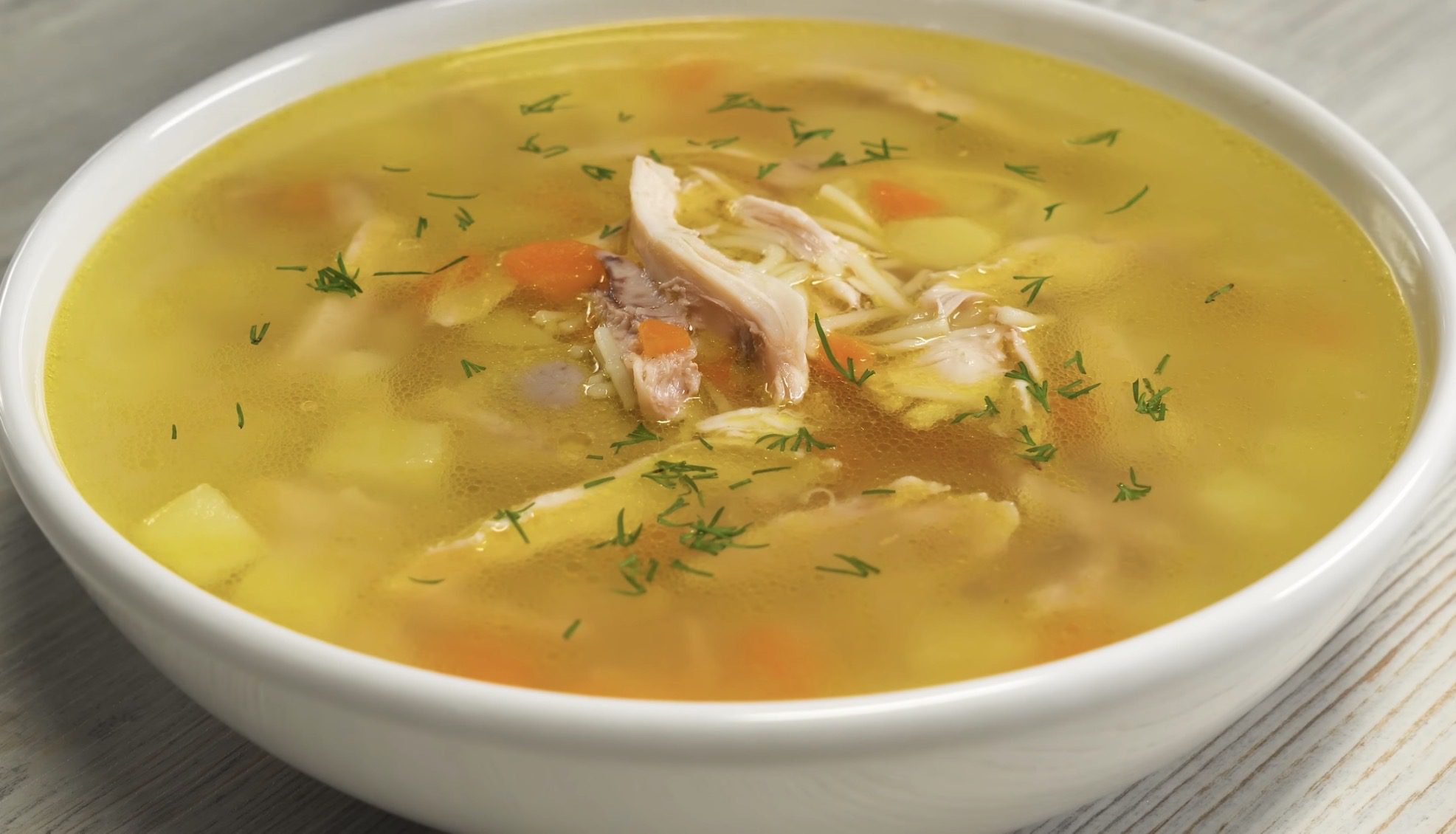 Солити одразу бульйон не можна, бо це завадить виділенню піни. Вкидайте сіль уже наприкінці варки. Овочі на шматки не нарізайте – нехай варяться цілими. Не ігноруйте момент проціджування, аби курячий бульйон виглядав чистим. Якщо він усе-таки помутнів, додайте трохи яєчного білка. Можете також скористатися крижаною водою.