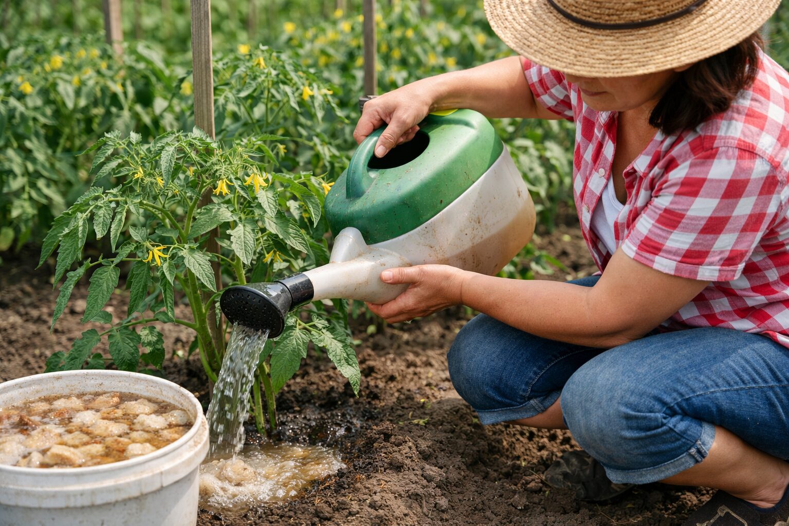 Підливайте овочеві рослини під самий корінець у момент зацвітання. Знадобиться близько 0,5 л для кожного кущика. За тиждень повторіть хлібне підживлення. Коли почнеться процес плодоношення, від такої органічної обробки слід відмовитися.