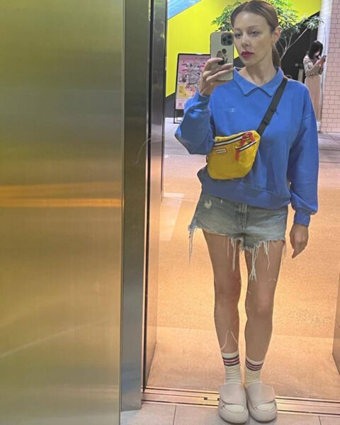 У своєму Телеграм-каналі Тіна Кароль виклала дзеркальне селфі, на якому позувала у синій толстовці, коротких джинсових шортах, шльопанцях на високій підошві та в гольфах. Свій молодіжний образ вона доповнила поясною сумкою жовтого кольору, створивши композицію кольорів українського прапора, волосся співачка зібрала у низький хвіст, губи нафарбувала яскравою помадою, також помітно, що у неї ніжно-рожевий манікюр.