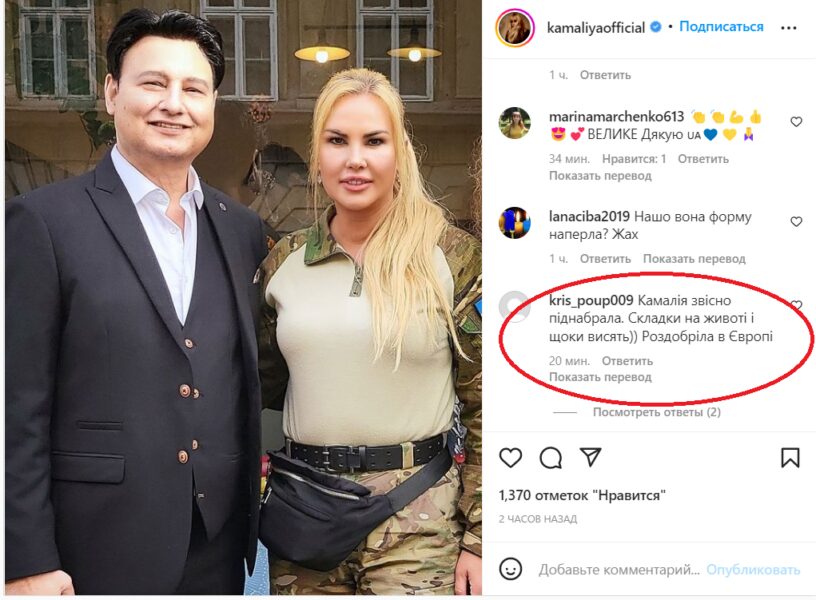 Користувачі Мережі відразу почали коментувати новий знімок. Дехто почав робити компліменти Камалії, а дехто відмітив, що вона погладшала.