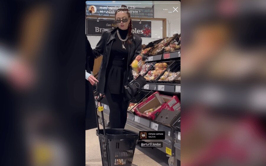 Молода парочка закоханих пройшлись вулицями Лондона й завітали до місцевого супермаркету для того, щоб зробити покупки. Епатажні студенти одягли доволі стильний лук. Маша Полякова вирішила одягти повністю чорний одяг, а ось її хлопець захотів поекспериментувати з кольорами та їхніми поєднаннями.
