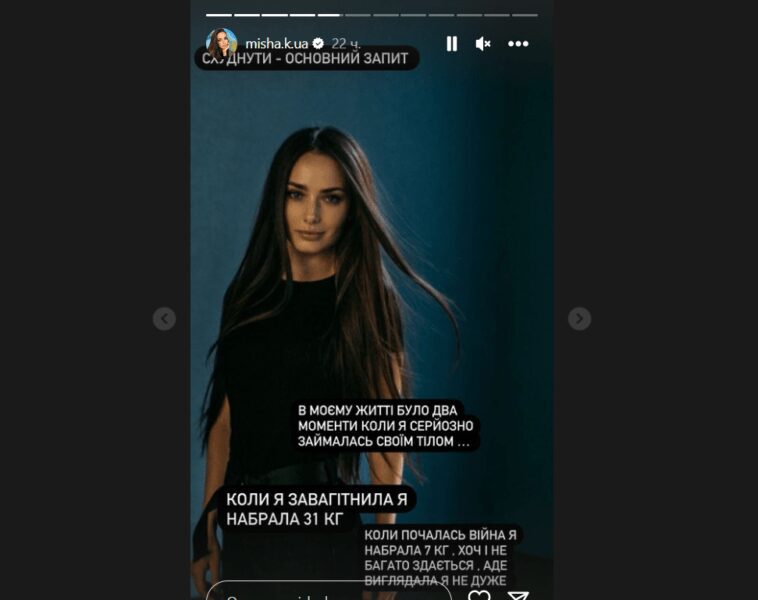 Також Мішина зізналася, що не так давно вона знову боролася із зайвою вагою. Після початку повномасштабної війни в Україні дівчина набрала 7 кілограмів і, як каже сама Мішина, виглядала не дуже. За допомогою спорту та дієти акторка повернула свою форму.
