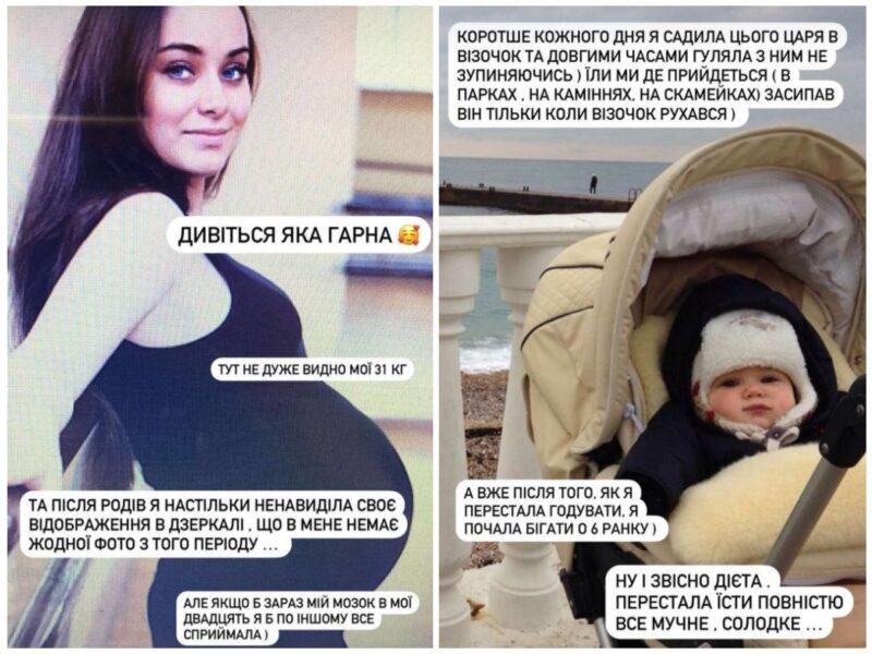 У своєму Інстаграм-блозі Мішина зізналася, що не має жодного фото з того періоду свого життя, адже тоді не приймала себе. Втім, акторка показала знімок, де вона позує на останніх місяцях вагітності. На фото Ксенія має пухкі щічки та круглі форми.