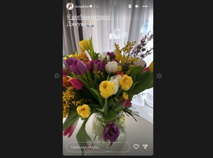 Своїми подарунками вже встигли похизуватися українські знаменитості. Так, Катя Осадча показала розкішний букет тюльпанів, який їй подарував Юрій Горбунов.