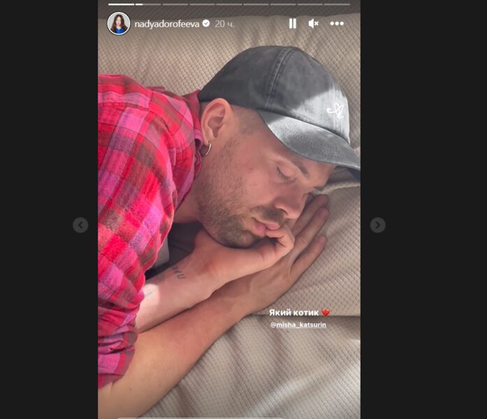 Нещодавно у своїх Інстаграм-сторіс Дорофєєва оприлюднила фото свого коханого у її ліжку. Михайло Кацурін у сорочці та картузі спокійно спав.