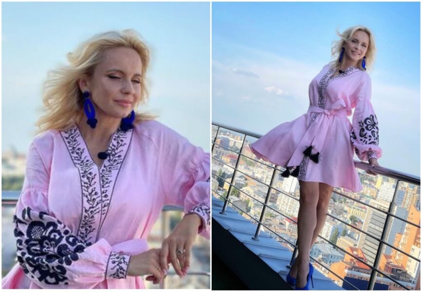 Українська акторка і телеведуча Лілія Ребрик також любить рожеві сукні. Вона навіть має сукню-вишиванку у такому кольорі.