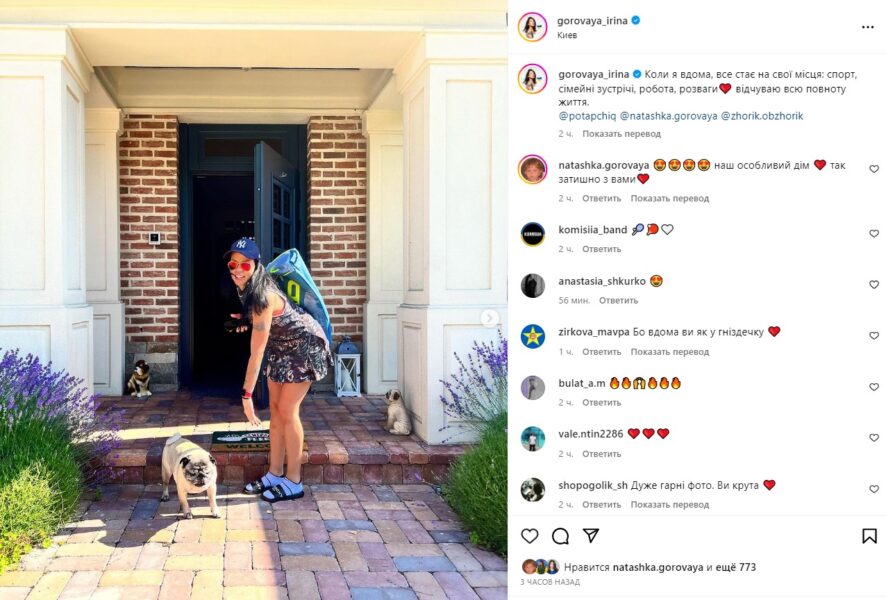 В своєму Інстаграм-блозі Ірина Горова показала кадри на подвір’ї разом з сімейним улюбленцем – мопсом Жоріком. Після повномасштабного вторгнення Ірина багато часу проводить за кордоном, тому кожен її приїзд в Київ – справжнє свято для неї.