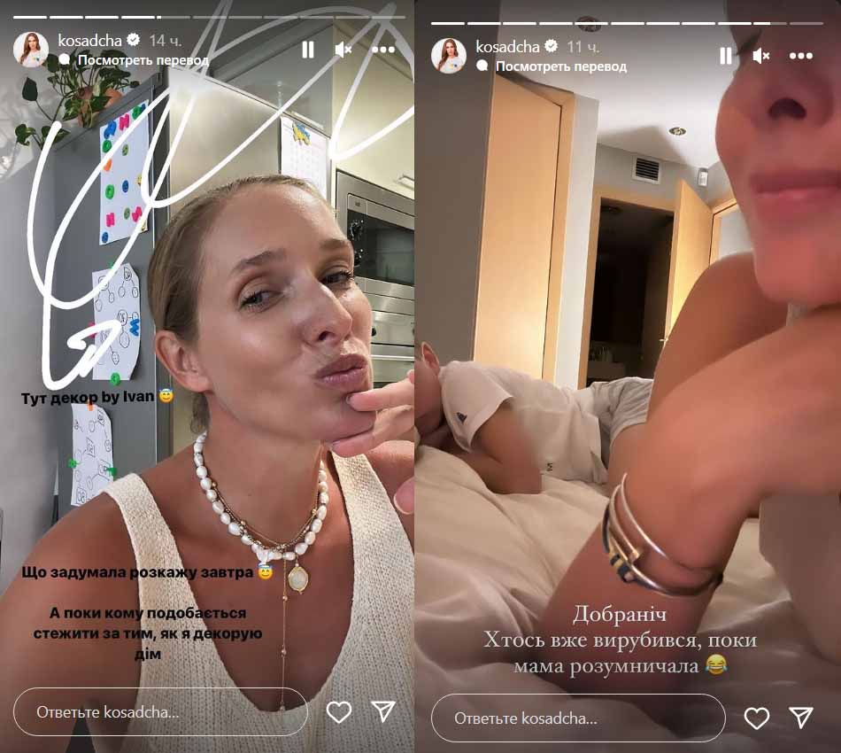 Осадча частенько записує Сторіз зі своєї оселі. Тож можна побачити оздобу на білих стінах та підвіконня, великі панорамні вікна та частини меблів, що потрапляють у кадр, чималий холодильник і дитячу спальню з білою постіллю, на якій спить синочок, допоки мама займається важливими справами – комунікує з підписниками.