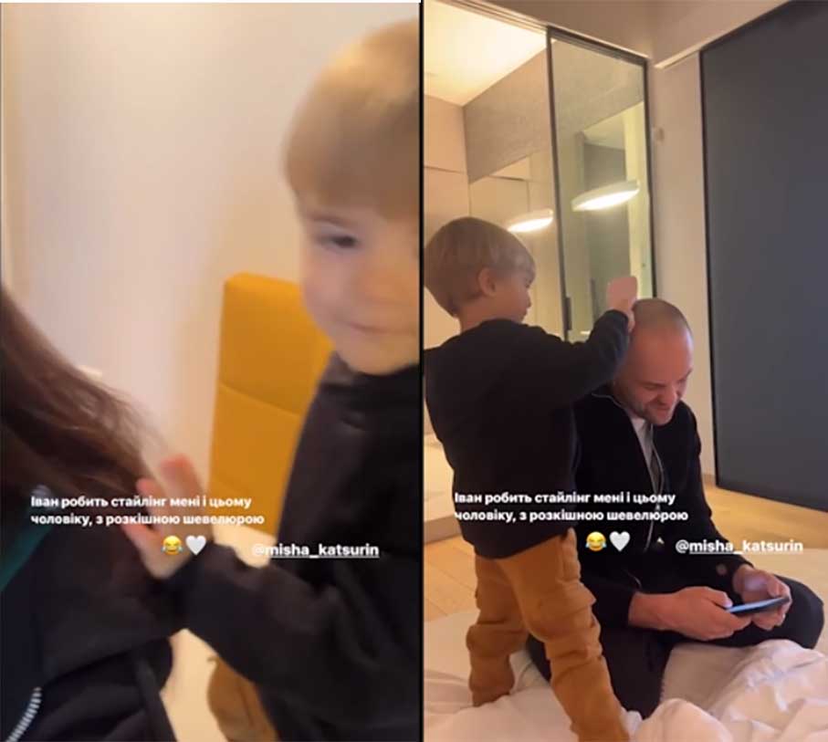 А ось Надя виклала відео, як маленький синочок її нинішнього чоловіка бавиться разом із ними на ліжку. Спочатку малюк намагався причесати татка, та оскільки волосся на голові у Міші обмаль, довелося перемикнутися на Надю. Тут уже Іванку було де розвернутися.