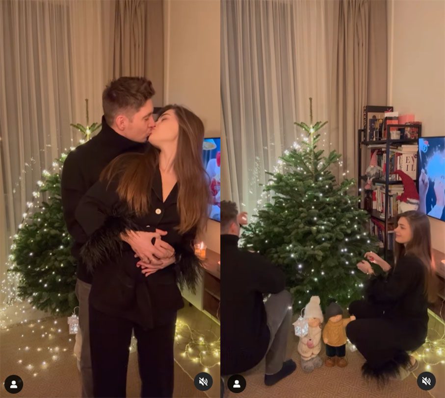 Шоумен із третьою дружиною хоч іще й не встигли набриднути одне одному, та цілуватися на морозному повітрі не наважилися. Обрали для цього більш затишне місце – під гарно вбраною ялинкою.