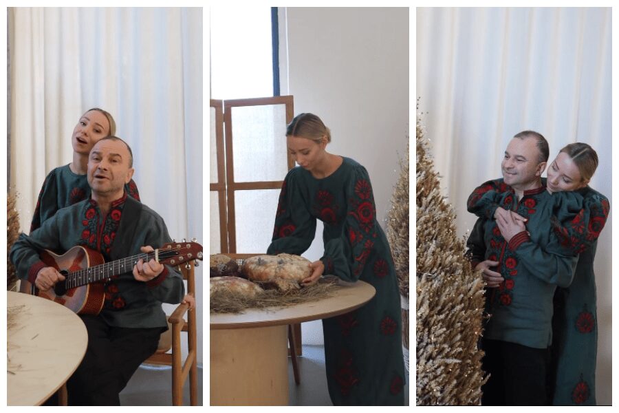 У відео можна побачити, як Катерина та Віктор з’являються в однакових темно-зелених вишиванках з червоними маками. Катерина обирає вишиту сукню з цими квітами, а Віктор — вишиту сорочку та чорні штани. Співак відзначився чудовою грою на гітарі, яка супроводжувала колядку.