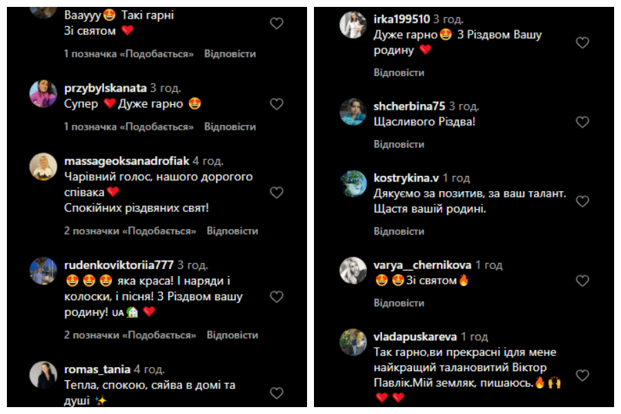 До слова, це різдвяне відео зібрало безліч вподобайок і теплих відгуків. Прихильники пари висловлюють подяку за чарівну різдвяну атмосферу. Також коментатори виражають своє захоплення красою вишиванок. Ось декілька коментарів, які можна зустріти під дописом: