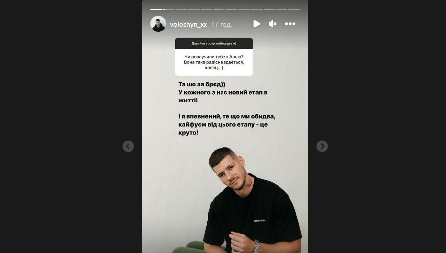 У своїх stories Волошин відповів на безліч питань, серед яких були й ті, що стосуються його особистого життя. Фанати зауважили, що колишня дружина блогера Анна Трінчер здається дуже щасливою, і це не залишилося без їхньої уваги. У відповідь Олександр відзначив, що кожен з них переживає новий етап і радіє цьому.