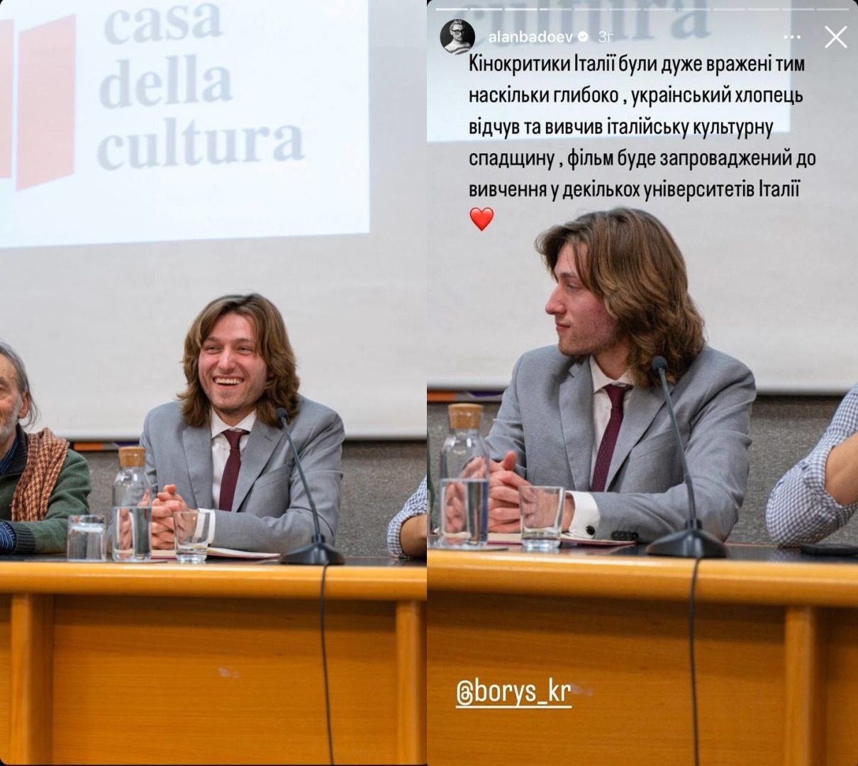 В Італії нині перебуває і син Бадоєвих Борис. Схоже, не сидить без діла, як Денис Повалій і не канючить у мами російські рублики. Днями у Мілані відбулася прем’єра документального фільму, який зняв Борис Бадоєв. На його створення українця надихнули італійські митці минулого століття.